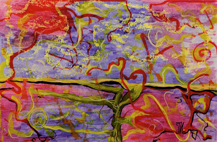 watercolor and wax crayons painting on paper